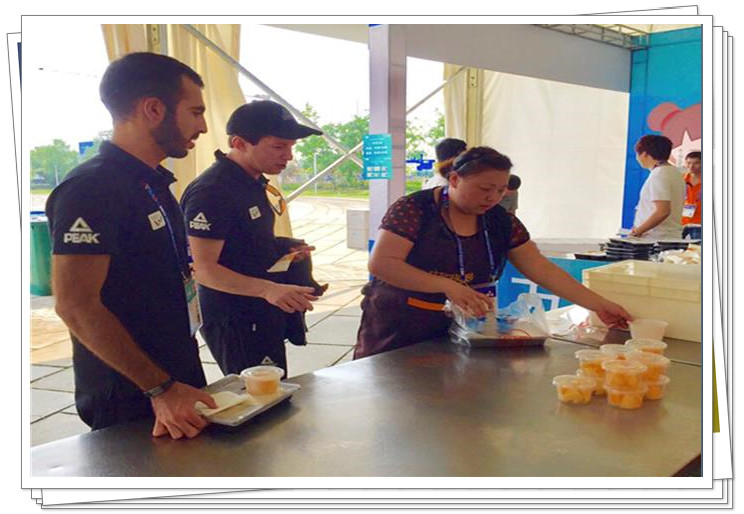 赛事期间,为确保效劳事情的有序进行,公司组织专人专车全程效劳,从凌晨四点开始忙碌到晚上十点才结束,每天准时准点的将3000余份精心制作的营养健康餐食送到赛事后勤事情人员手中,将近百种日用品、水果、休闲食品、西式面点等送抵达效劳所在。